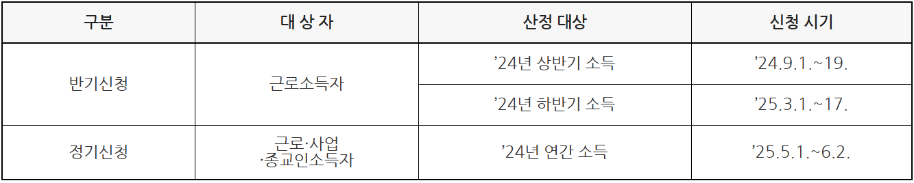단, 사업/종교소득이 있는 분들은 정기신청을 하셔야 합니다.